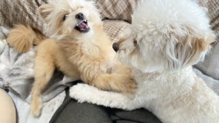 ケンカ?遊び?犬のじゃれ合いの見分け方【トイプー×ポメプーのリアル】