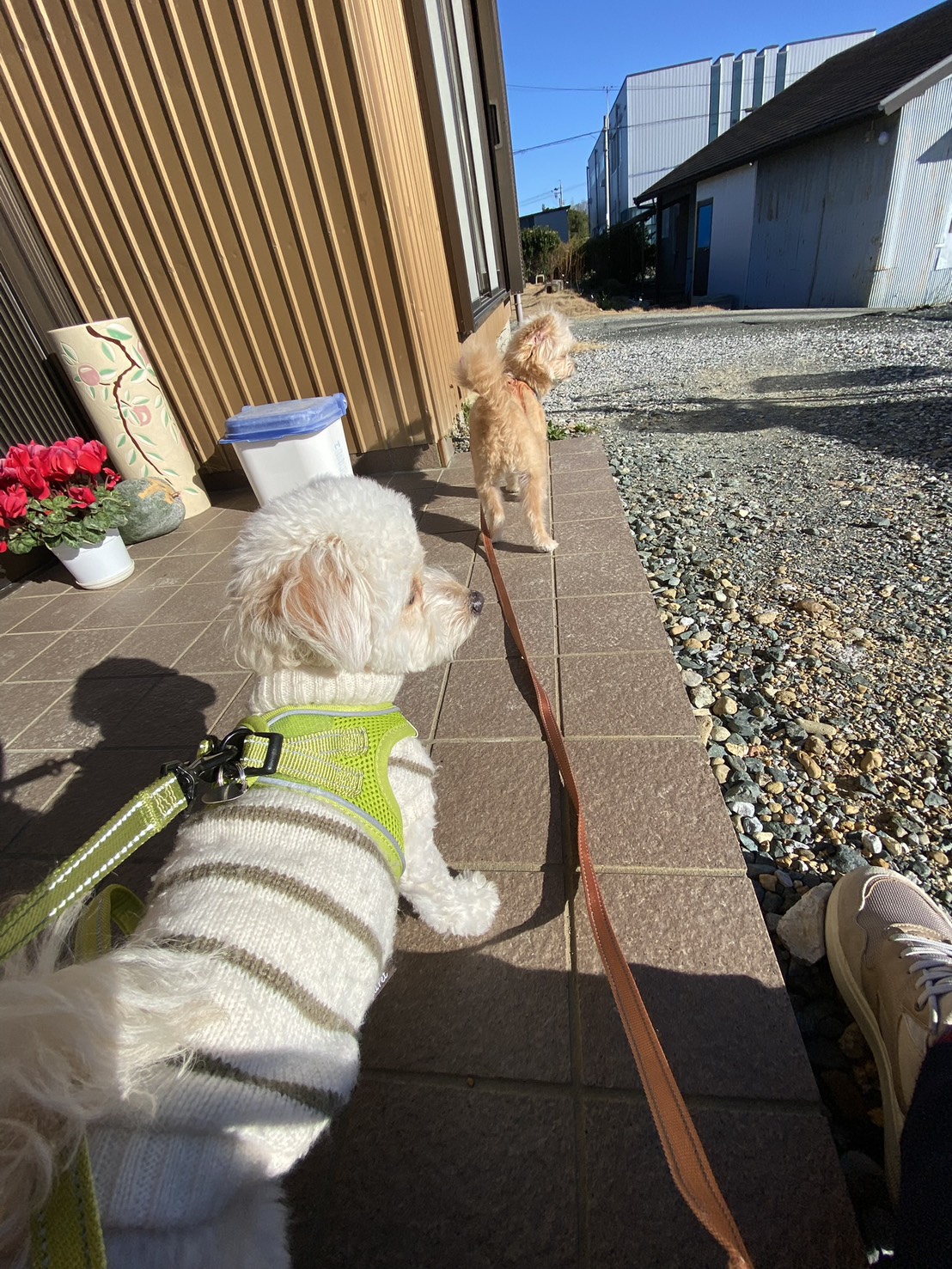 散歩行こっか〜って声かけると、うちのトイプードルとポメプーは